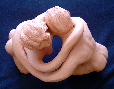Nanã não resistiu a terrível seca. Infelizmente, morreu de fome e seus pais padecem inconsoláveis ao pé do túmulo. Série de esculturas da poesia A Morte de Nanã